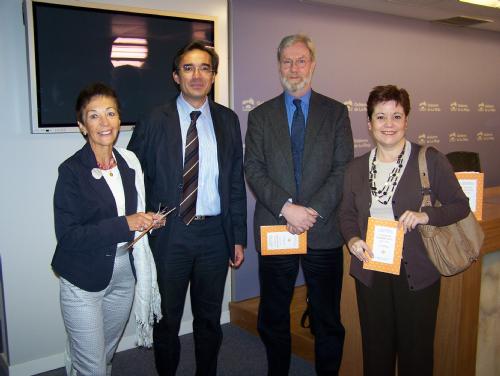 El Director General de Cultura, Javier García Turza, la co-directora del Instituto de Historia del Libro y de la Lectura de Cilengua, María Luisa López-Vidriero, el profesor Nicholas Pickwoad y la Coordinadora General de la Fundación San Millán de la Cogolla, Almudena Martínez, han presentado hoy el I Curso monográfico del Instituto de Historia del Libro y de la Lectura “European Bookbinding 1500-1800” que será impartido por Nicholas Pickwoad, profesor experto en encuadernación antigua, entre los días 19 y 23 de octubre en la sede de Cilengua, en San Millán de la Cogolla, y en la Biblioteca de La Rioja.