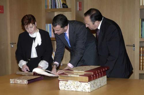 Durante su visita a San Millán, D. Felipe de Borbón conoció las instalaciones del Centro Internacional de Investigación de la Lengua Española (Cilengua), donde descubrió una placa conmemorativa y conversó con los directores e investigadores de los Institutos que forman parte del mismo, animándoles a seguir trabajando en el estudio y difusión de la lengua española, señalando que este Centro “pretende ser un ‘Scriptorium’ que conjugue, como el histórico emilianense y como la propia lengua española, tradición y modernidad, abierto a la colaboración con otros centros que trabajan al servicio del español”.