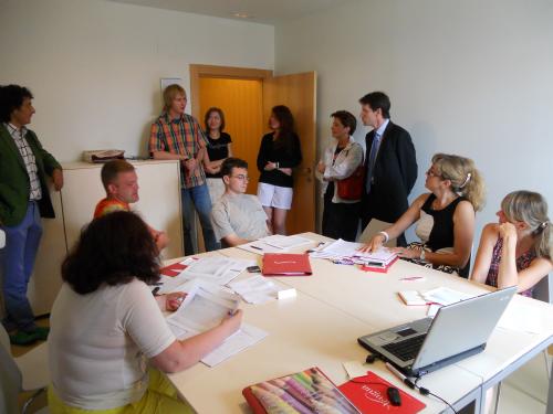 El consejero de Educación, Cultura y Turismo y vicepresidente de la Fundación San Millán de la Cogolla, Gonzalo Capellán, y la coordinadora general de la Fundación, Almudena Martínez, han visitado hoy en la Residencia Casa-Palacio Manso de Zúñiga en Canillas de Río Tuerto al grupo de estudiantes rusos que están asistiendo al Curso de Lengua y Cultura Españolas que, organizado por la Fundación San Millán de la Cogolla  y el  ‘Centro de Cultura y Lengua ADELANTE’ de San Petersburgo, se  desarrolla hasta el 29 de julio.