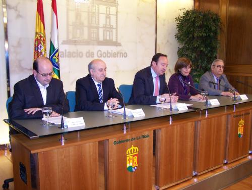 El Presidente del Gobierno de La Rioja y de la Fundación San Millán de la Cogolla, Pedro Sanz, ha participado hoy en Logroño en la presentación del convenio de colaboración suscrito entre la Fundación San Millán de la Cogolla y la Universidad del País Vasco (UPV/EHU) “para la investigación y difusión del patrimonio de San Millán de la Cogolla”, considerado la cuna del español. Pedro Sanz ha resaltado que ambas instituciones indagarán “en particular en lo que se refiere al pasado común de ambos territorios y a la historia de las lenguas castellana y vasca”.