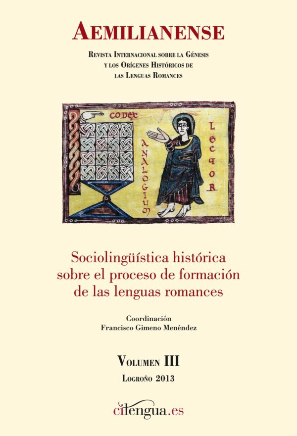 Presentación del volumen: Francisco Gimeno Menéndez. Congreso Internacional de Sociolingüística Histórica sobre el proceso de formación de las lenguas romances con motivo de su inauguración, Francisco Gimeno Menéndez. Conclusiones del Congreso Internacional de Sociolingüística Histórica sobre el proceso de formación de las lenguas romances, Francisco Gimeno Menéndez. Dialectos románicos y dialectos vascos en contacto en la protohistoria hispánica, Mª Teresa Echenique Elizondo. Fundamentos antropológicos y sociológicos de los protorromances hispanos, Francisco Gimeno Menéndez. El arte de notariar y los primeros formularios notariales hispánicos, Roldán Jimeno Aranguren. Història social de la llengua: dels orígens als primers intents de normativització del català (segles IX-XV), Brauli Montoya Abat. Áreas antroponímicas en la primitiva Castilla (siglos IX al XII), Emiliana Ramos Remedios. El Becerro de Cardeña: algunos rasgos fonológicos, Máximo Torreblanca. El latín y el romance en dos documentos de Zadar del siglo X, Ankica Bralić y Nikola Vuletić.