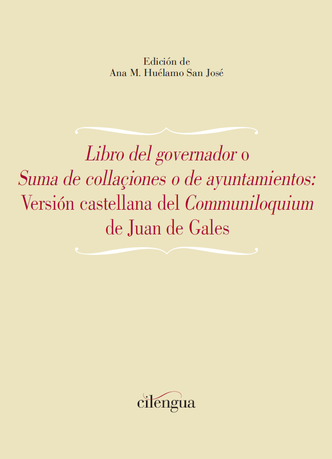 Presentamos aquí la traducción castellana cuatrocentista de la obra, titulada Libro del governador o Suma de collaçiones o de ayuntamientos (ms. 12181 de la BNE), acompañada de un estudio introductorio en el que se la encuadra en el marco de la predicación del siglo XIII y dentro de la producción de su autor. Asimismo, se realizan una serie de consideraciones genéricas y estructurales, un análisis del contenido y una descripción del códice. Por otra parte, se estudia su fortuna en la literatura europea y su difusión en las coronas de Aragón (Juan Fernández de Heredia, el papa Luna o Francesc Eiximenis) y Castilla, prestando especial atención a las obras literarias medievales peninsulares en las que se puede rastrear tanto su influencia como la del Breviloquium de virtutibus antiquorum principum et philosophorum, espejo de príncipes del franciscano galés cronológicamente anterior (c. 1260): El De preconiis Hispanie de Juan Gil de Zamora, la Glosa al Regimiento de príncipes de Egidio Romano, el Centiloquio del Marqués de Santillana, las glosas de Pero Díaz de Toledo a la Esclamaçión y querella de gobernación de Gómez Manrique, la Suma de la Política de Sánchez de Arévalo, etc.